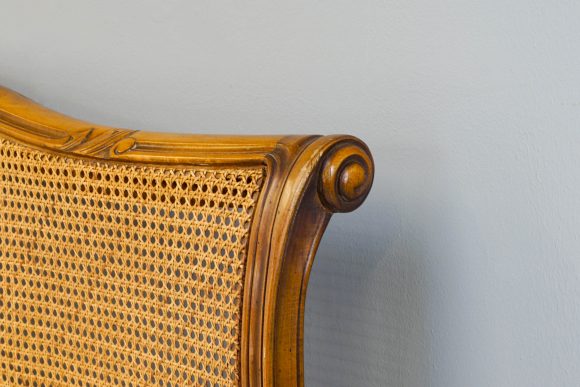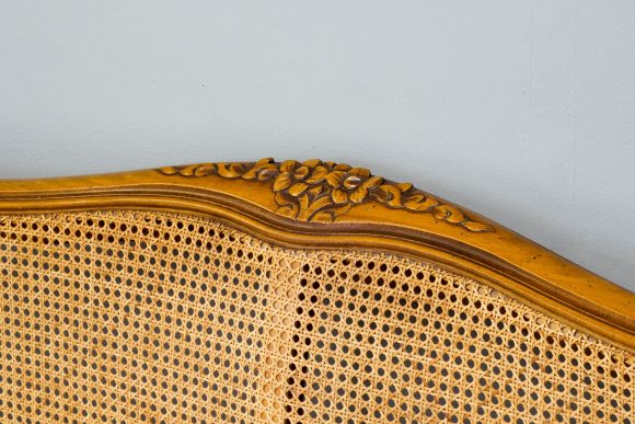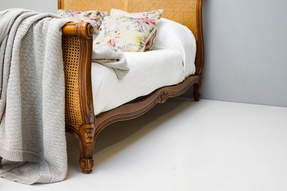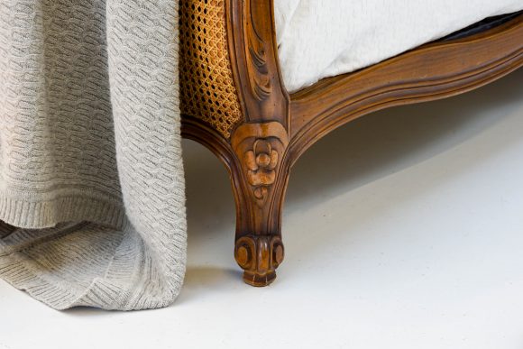 This refurbished French bed is supplied with a new slatted beech sprung base.